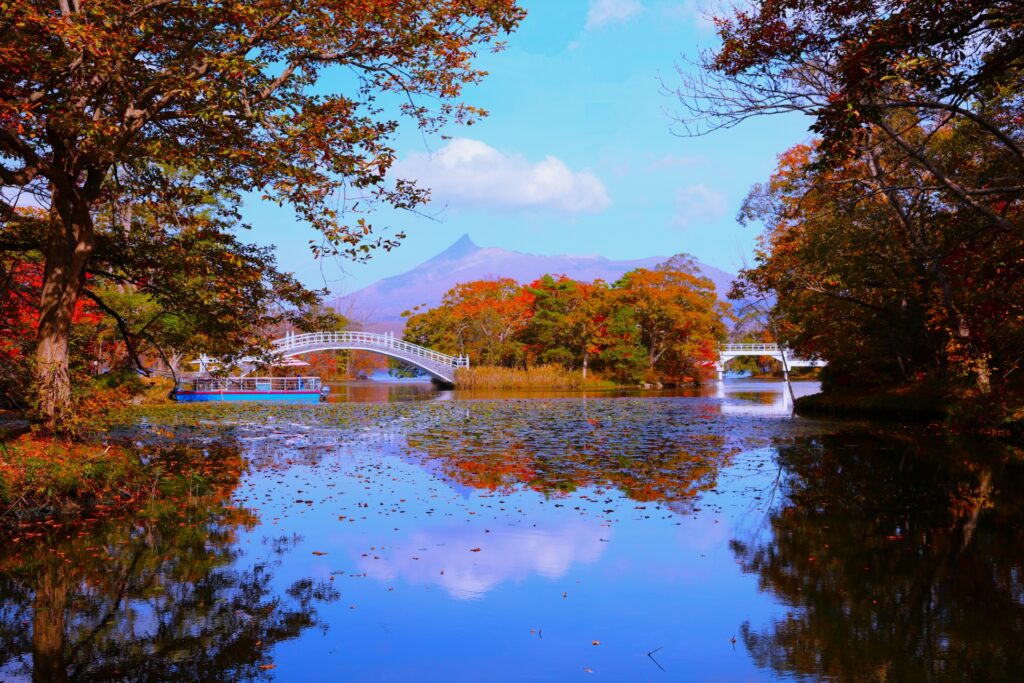 ①【大沼国定公園】湖と紅葉のコントラストが絶景!